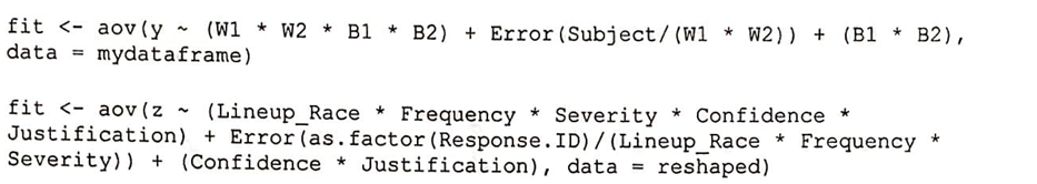 A dataset spanning over 660 individual confidence statement interpretations was collected. Each entry consists of variables included Response ID, Justification [Confidence Only, Featural, or Unobservable], Confidence [High or Medium], variables regarding the combination of Race of Lineup, Severity of crime [High or Low], and Frequency of crime [High or Low], as well as evaluators' Gender, Age, Race, and State/Region.