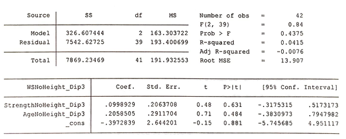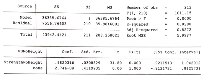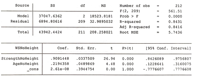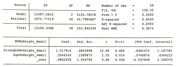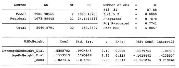 Initial regression of strength to walking speed held no observable strong relationship. However, by eliminating the effects that height had on both of the variables, a solid relationship appears.1, 2