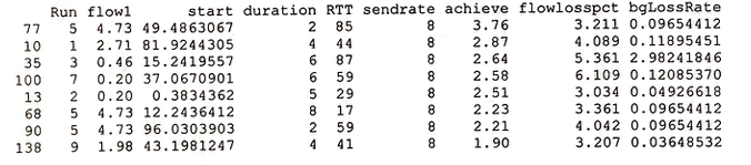 The dataset includes a total of 147 lines of data with variables Run Number>, First Flow Start Time, Flow Start Time, Duration, RTT, User Send Rate, Achieved Rate, Flow Loss Rate, and Background Traffic Loss Rate. To address the Client's concerns, regression techniques including logistic regression and Poisson regression as well as statistical modeling were utilized.